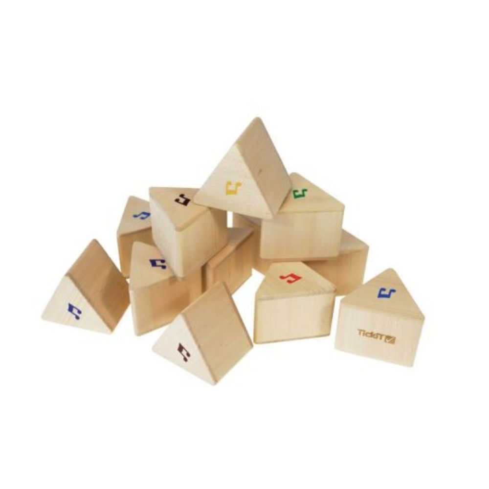 Voici un mémo sonore comprenant 6 paires de prismes sonores en bois d’hévéa. Chaque paire est identifiable par le son produit et par la couleur de la note de musique du prisme.