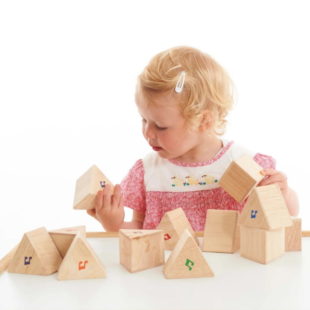 Chaque bloc mesure 6 centimètre de côté et 5 centimètres de hauteur. Ils peuvent être proposés aux enfants à partir de 18 mois.